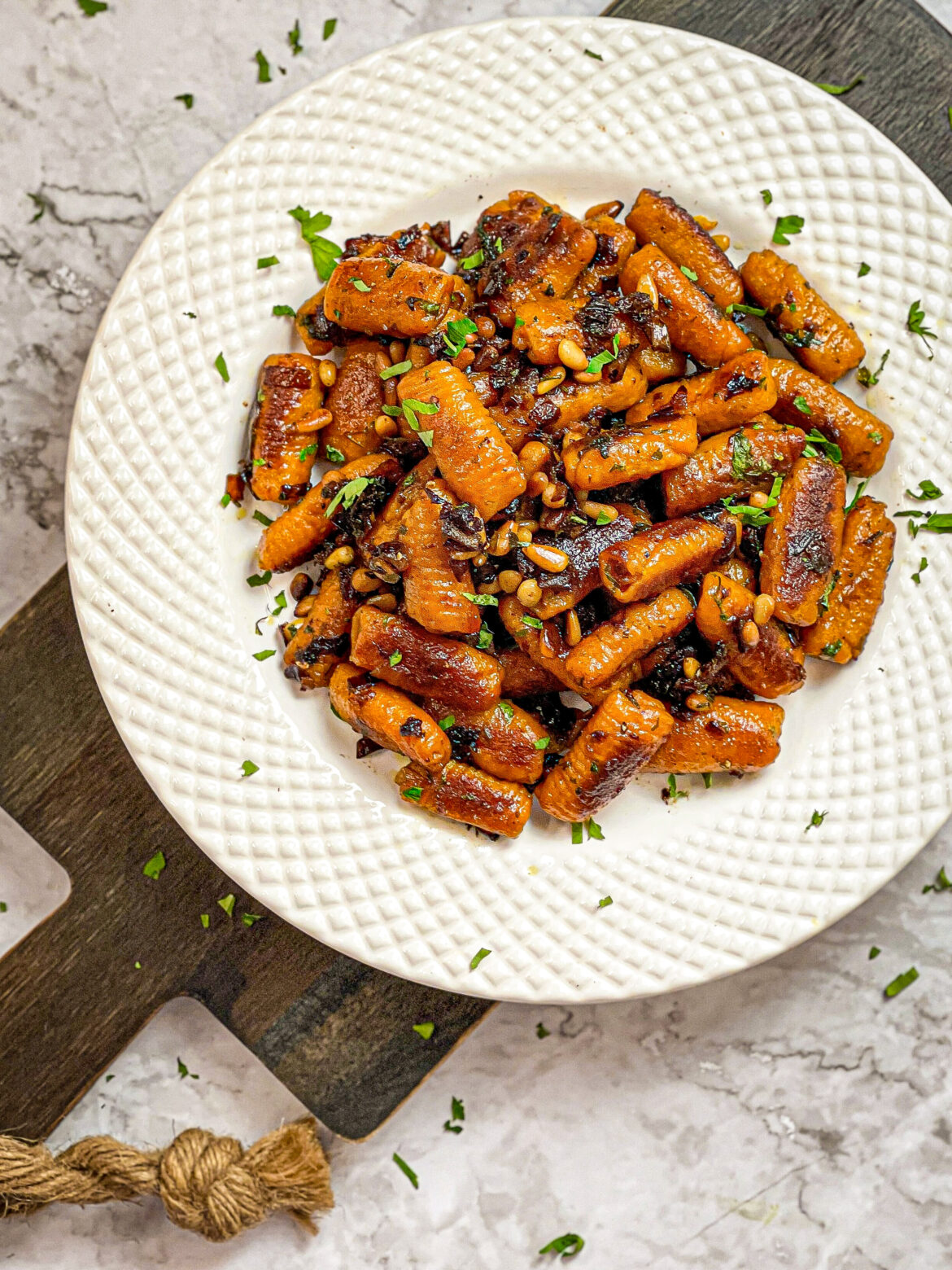 Crispy Pumpkin Gnocchi With Brown Butter, Garlic, Onions and Pine Nuts
