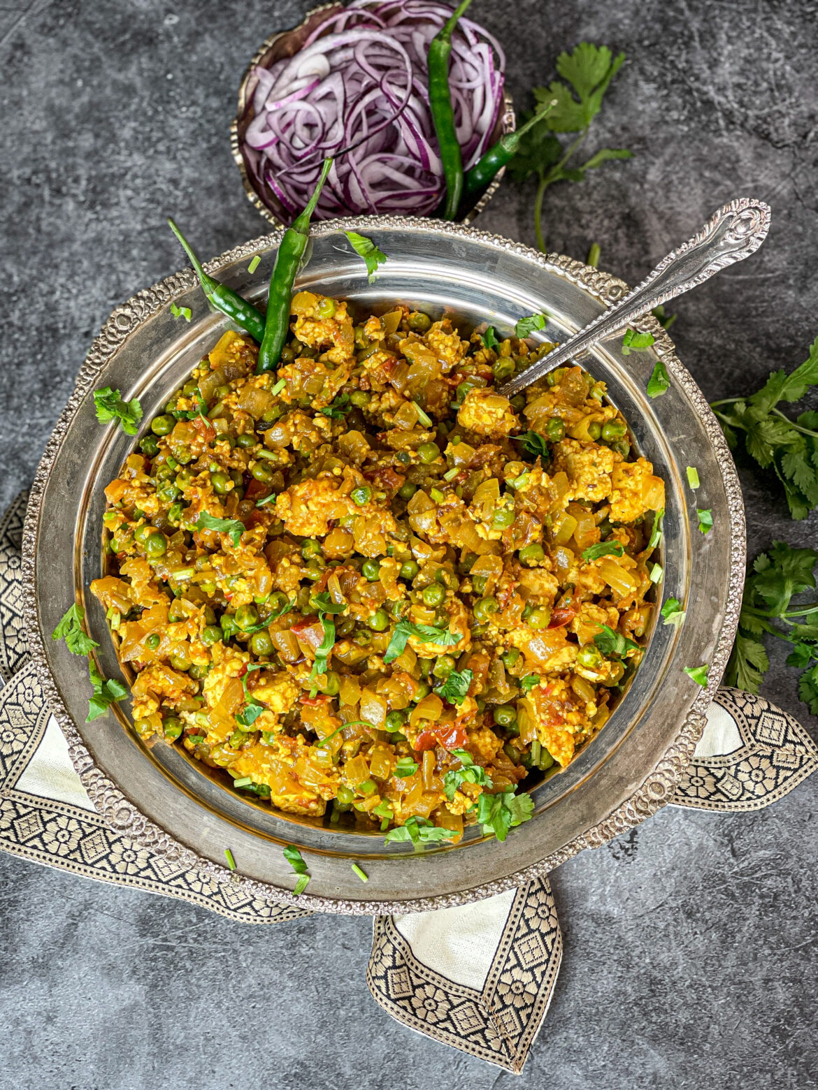There are many variations to the North Indian Muttar Paneer recipe… some serve it with lots of gravy but this amazing family recipe is more dry-style and enjoyed with rotis (or naan bread). It has become a staple in our home…. the kiddos love it rolled up in a roti or sometimes with rice.