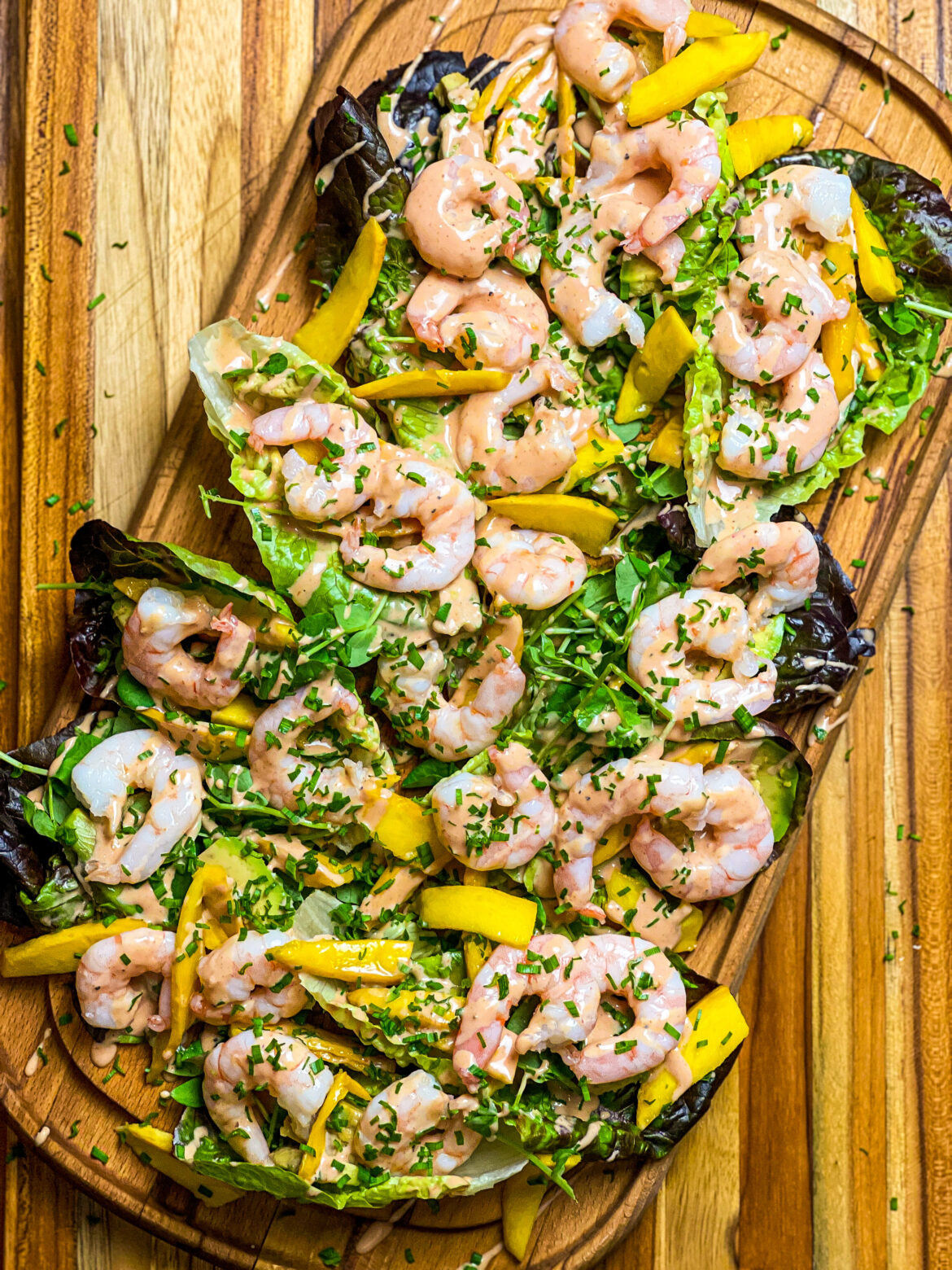 This Prawn cocktail served family style on a chopping board in big lettuce cups was such a hit! So much easier and more fun than a classic prawn cocktail. My twisted Bloody Mary inspired cocktail sauce using Mezcal (the Godfather of tequila)… specifically @mezcalzunte @mezcalzunteapac gives this one an extra smokey hit. I had some Bloody Mary salt gifted from @bloody_drinks which gave the cocktail sauce the perfect seasoning too but celery salt and black pepper are a great substitute!